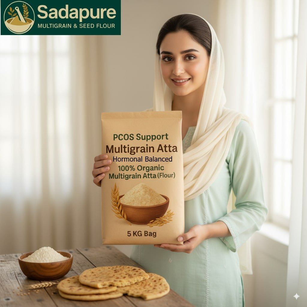 SadaPure multigrain flour supports blood sugar control, PCOS & hormonal balance, men’s stamina, heart health, and digestive comfort. Made from whole grains, legumes, and seeds for steady energy with fiber and plant protein suited to daily rotis, breads, and bowls. Choose what fits your needs: Diabetes Care, PCOS & Women’s Wellness, Men’s Stamina & Vitality, Heart-Healthy Mix, Digestive Wellness. Simple ingredients, consistent cooking results, and a taste your family will enjoy.