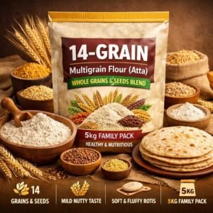 Flour made by milling two or more whole grains together. People also call it “multigrain atta” or “whole-grain chapati flour.” Compared with refined flour, it’s higher in fibre and plant protein and usually has a steadier glycaemic impact. For everyday cooking, choose a clean-label, stone-ground blend like SadaPure Multigrain Atta for better taste and nutrition.