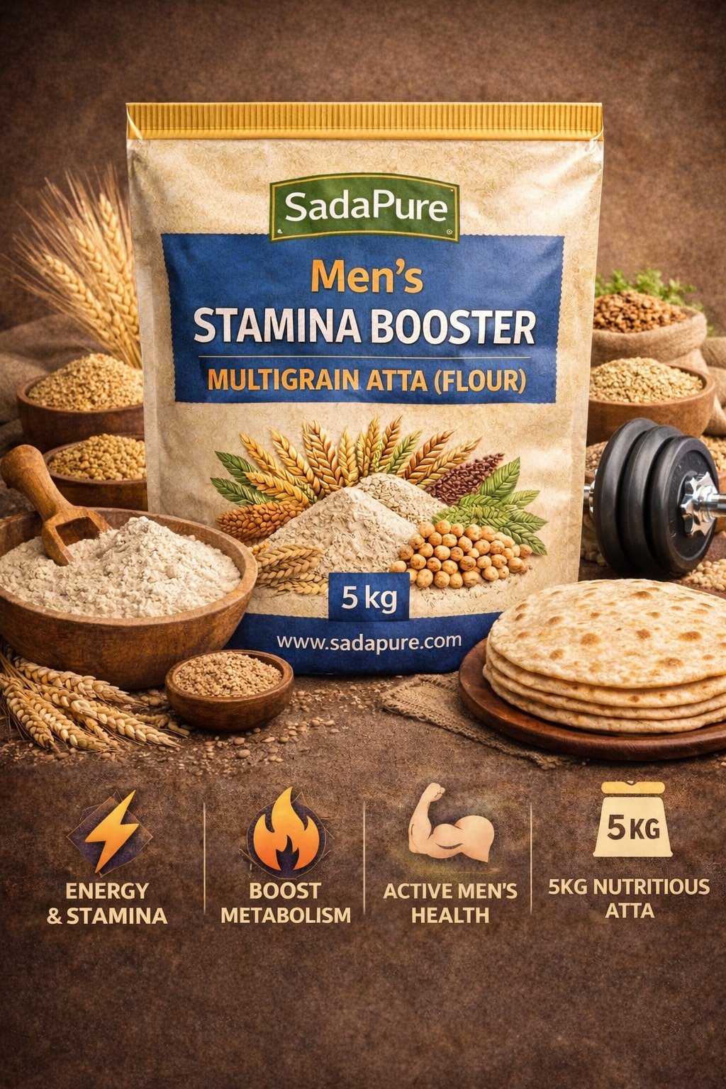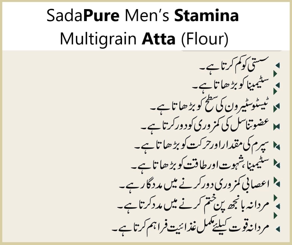 SadaPure Men’s Stamina Booster Multigrain Atta (Flour) 5KG – مردانہ طاقت کا راز