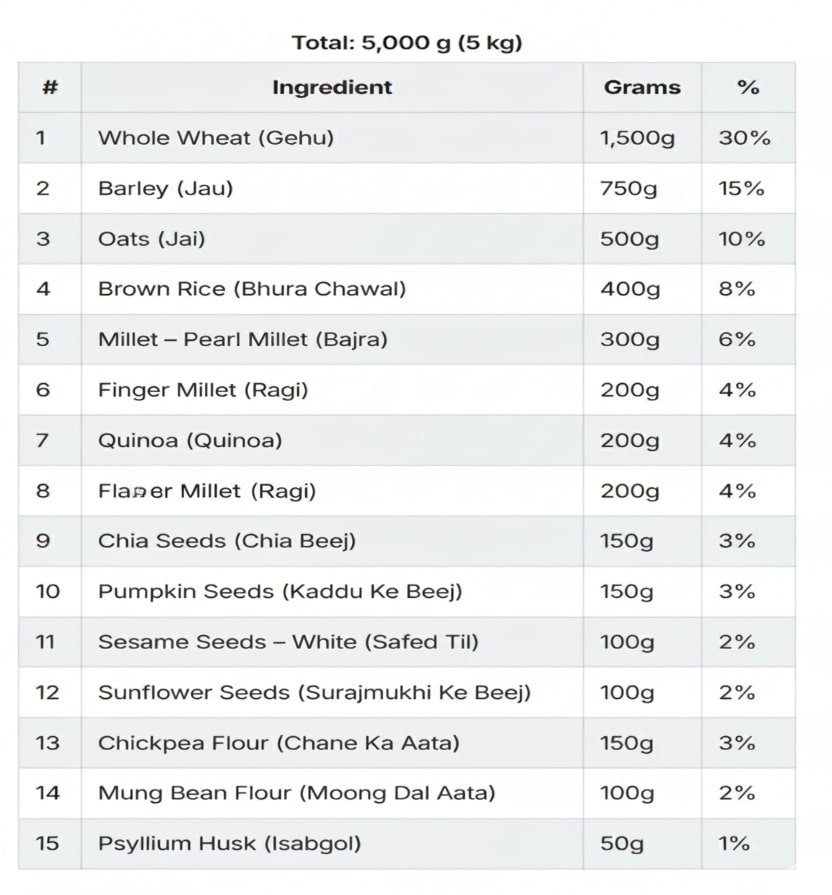 | 15 | Psyllium Husk (Isabgol) | 50g | 1% |