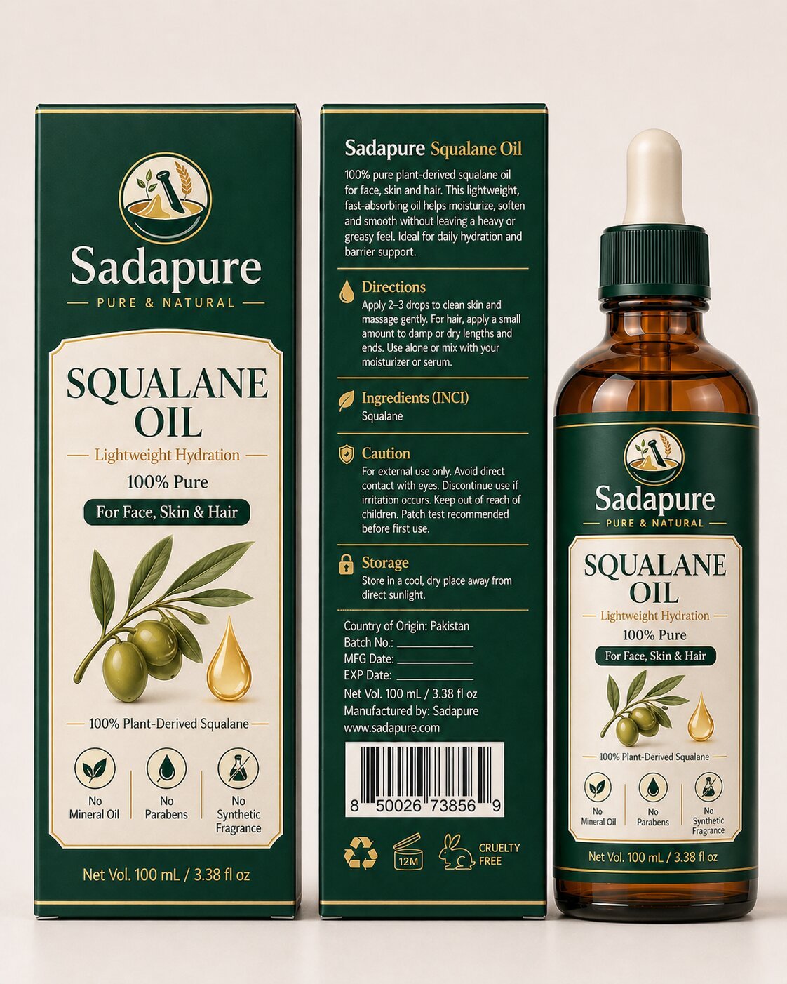 Sadapure Squalane Oil – 100% Pure Plant-Derived Carrier Oil for Face, Skin & Hair